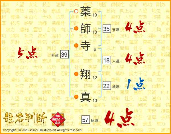 薬師寺翔真さんの外運は39画の5点!
