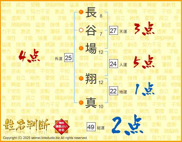 長谷場翔真さんの総運は49画の2点!