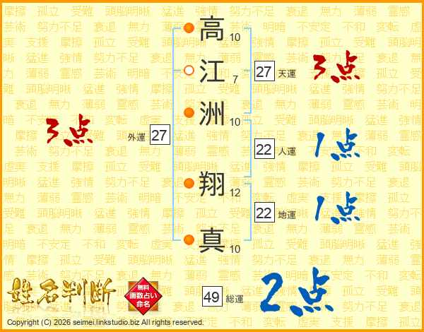 高江洲翔真さんの天運は27画の3点!