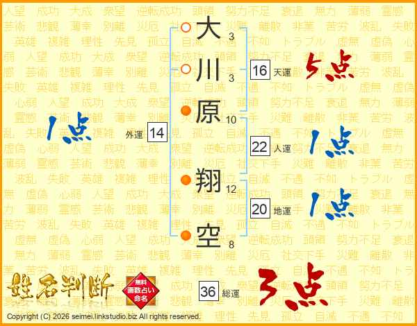 大(3画)川(3画)原(10画) 翔(12画)空(8画)