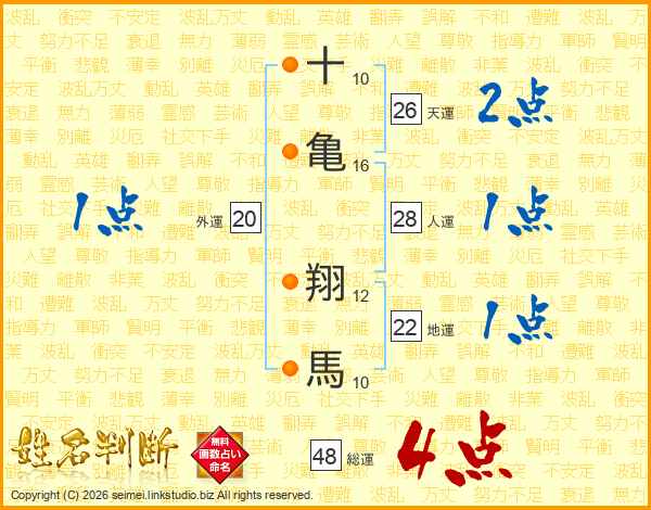 十(10画)亀(16画) 翔(12画)馬(10画)