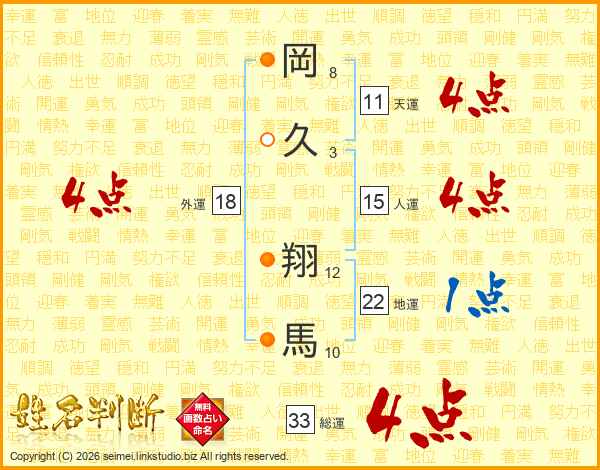 岡久翔馬さんの総運は33画の4点!
