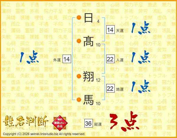 日髙翔馬さんの総運は36画の3点!