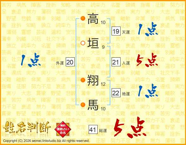 高垣翔馬さんの総運は41画の5点!