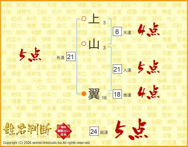 上山翼さんの人運は21画の5点!