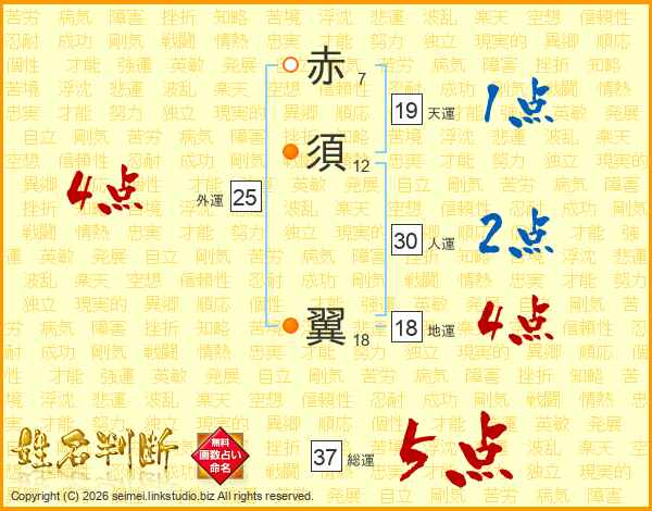 赤須翼さんの総運は37画の5点!