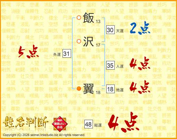飯沢翼さんの総運は48画の4点!