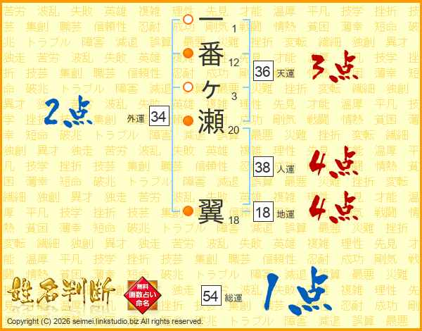 一番ヶ瀬翼さんの人運は38画の4点!