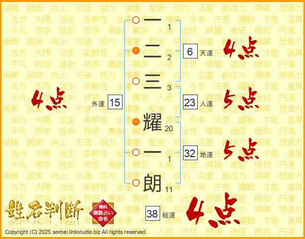 一(1画)二(2画)三(3画) 耀(20画)一(1画)朗(11画)