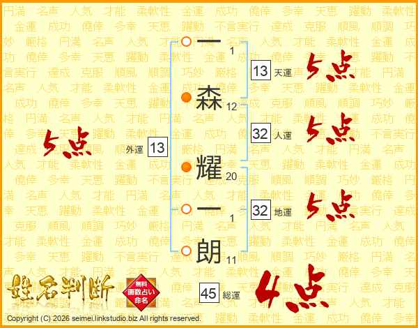 一森耀一朗さんの総運は45画の4点!