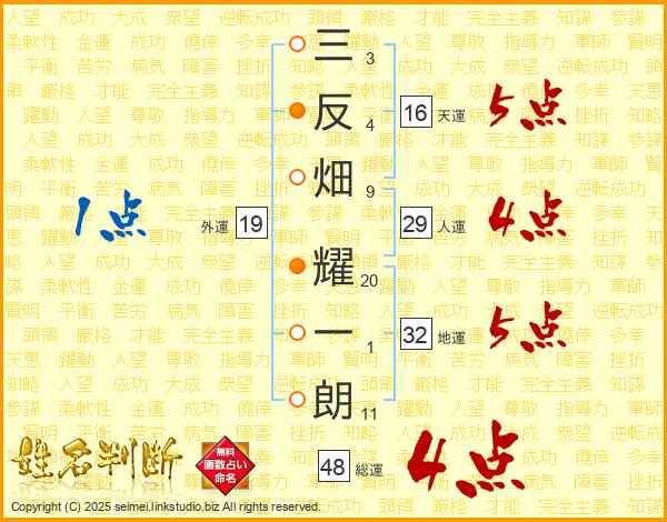 三反畑耀一朗さんの地運は32画の5点!