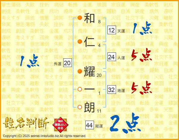 和(8画)仁(4画) 耀(20画)一(1画)朗(11画)