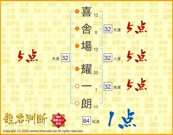 喜舎場耀一朗さんの天運は32画の5点!
