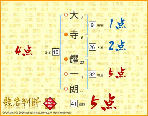 大寺耀一朗さんの総運は41画の5点!