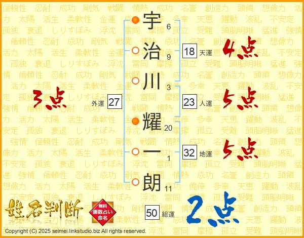 宇治川耀一朗さんの天運は18画の4点!