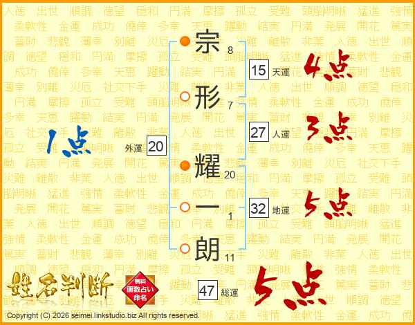 宗形耀一朗さんの総運は47画の5点!