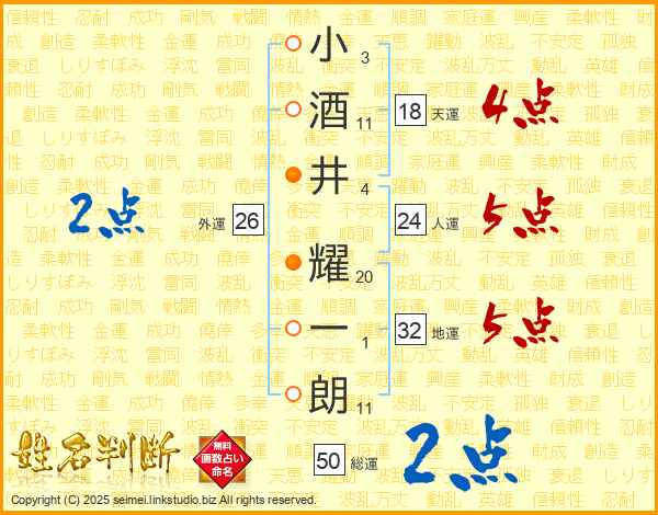 小(3画)酒(11画)井(4画) 耀(20画)一(1画)朗(11画)