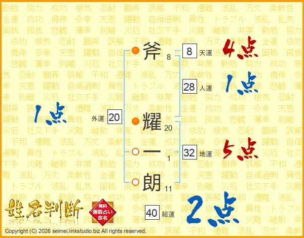 斧耀一朗さんの総運は40画の2点!