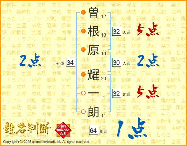 曽(12画)根(10画)原(10画) 耀(20画)一(1画)朗(11画)