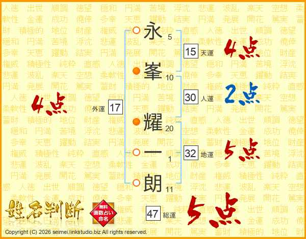 永峯耀一朗さんの総運は47画の5点!