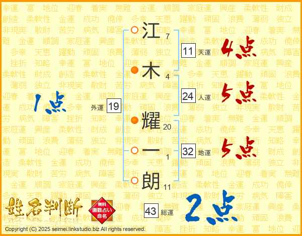 江木耀一朗さんの総運は43画の2点!