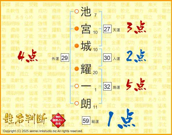 池宮城耀一朗さんの天運は27画の3点!