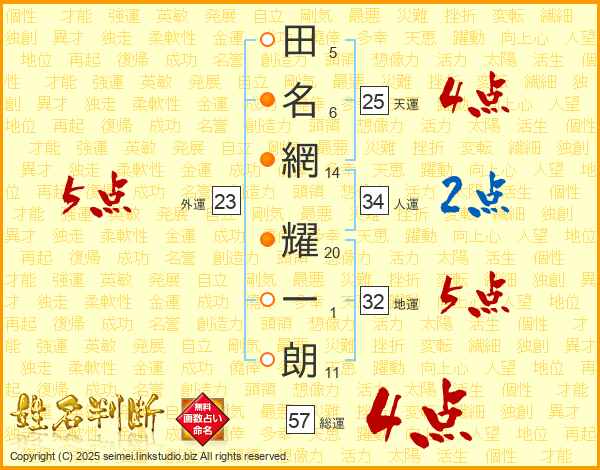 田名網耀一朗さんの天運は25画の4点!