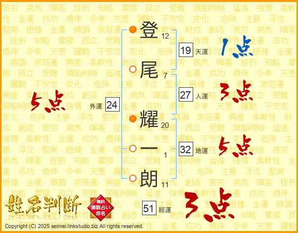 登(12画)尾(7画) 耀(20画)一(1画)朗(11画)