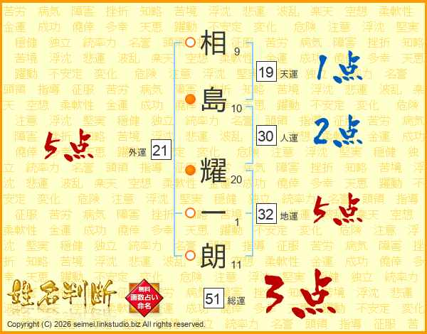 相(9画)島(10画) 耀(20画)一(1画)朗(11画)
