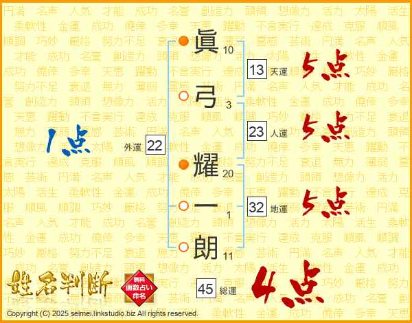 眞(10画)弓(3画) 耀(20画)一(1画)朗(11画)