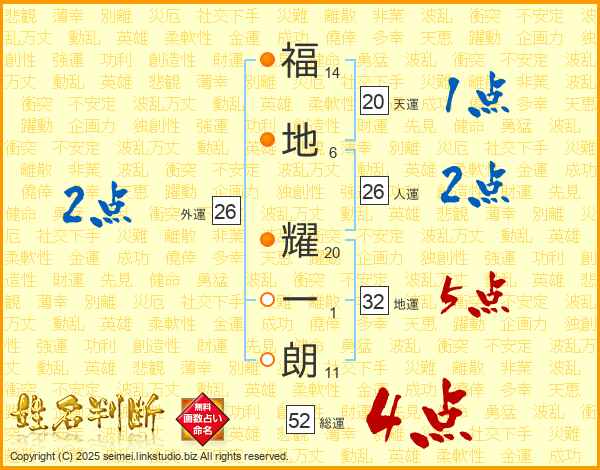 福(14画)地(6画) 耀(20画)一(1画)朗(11画)