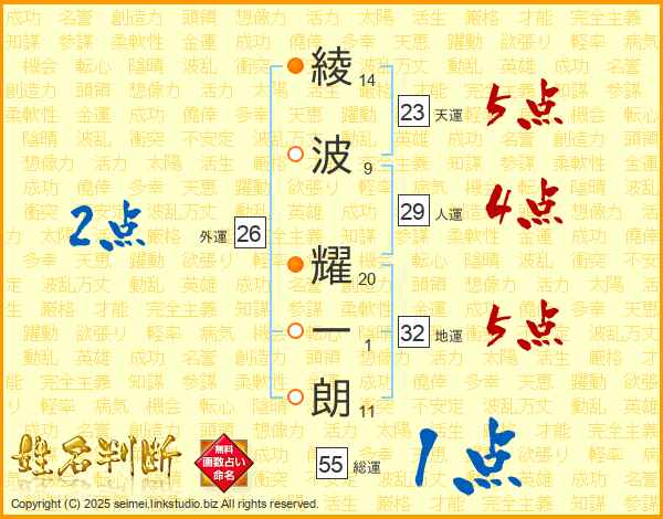 綾波耀一朗さんの総運は55画の1点!