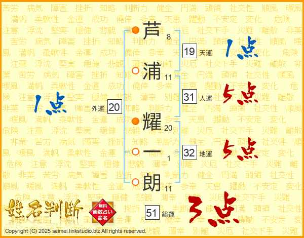 芦浦耀一朗さんの人運は31画の5点!