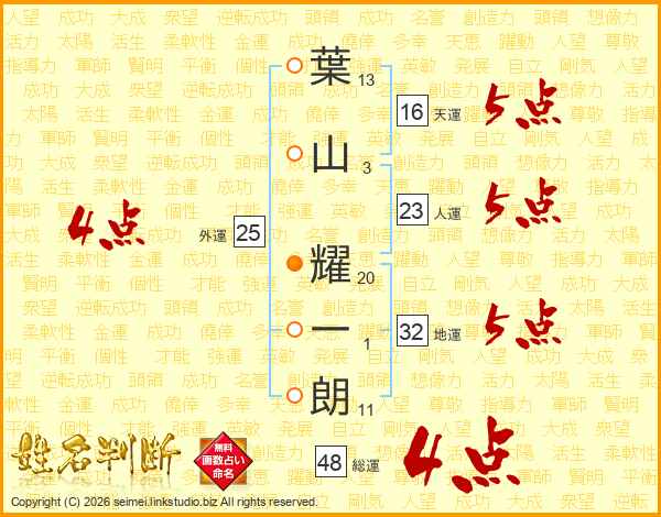 葉山耀一朗さんの総運は48画の4点!