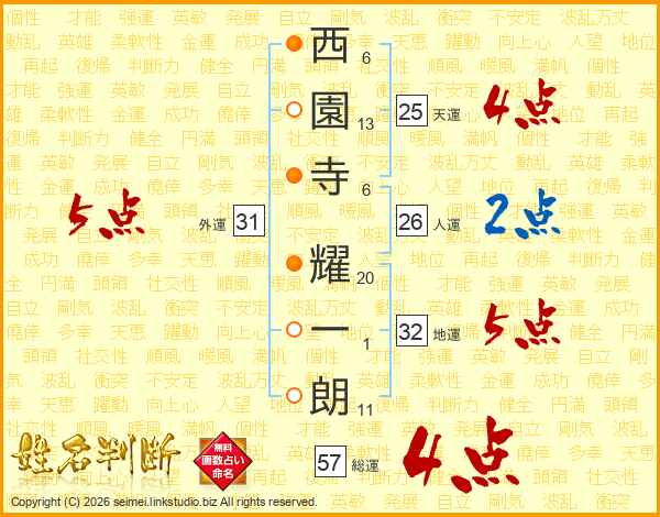 西園寺耀一朗さんの総運は57画の4点!