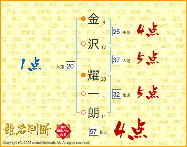 金沢耀一朗さんの天運は25画の4点!