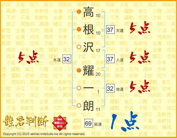 高根沢耀一朗さんの天運は37画の5点!