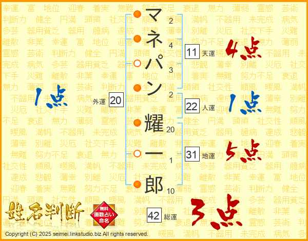 マネパン耀一郎さんの総運は42画の3点!