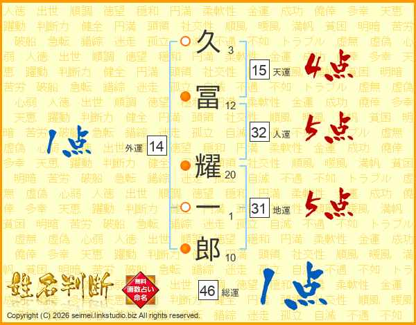 久冨耀一郎さんの人運は32画の5点!