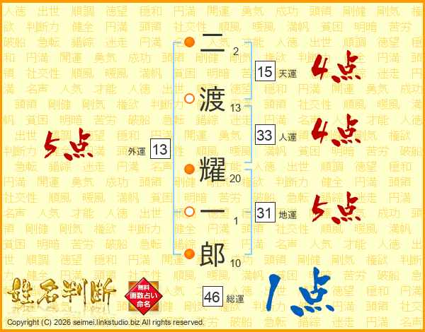 二渡耀一郎さんの総運は46画の1点!