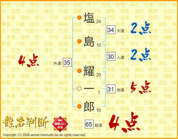 塩島耀一郎さんの総運は65画の4点!