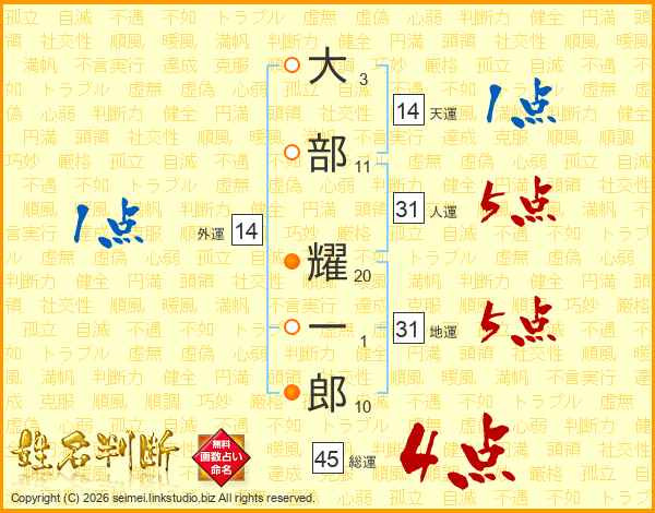 大(3画)部(11画) 耀(20画)一(1画)郎(10画)