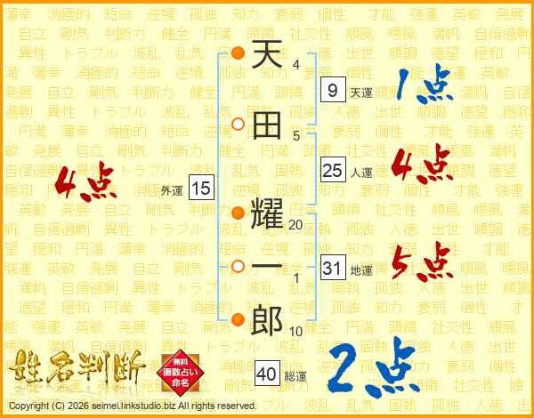 天田耀一郎さんの総運は40画の2点!