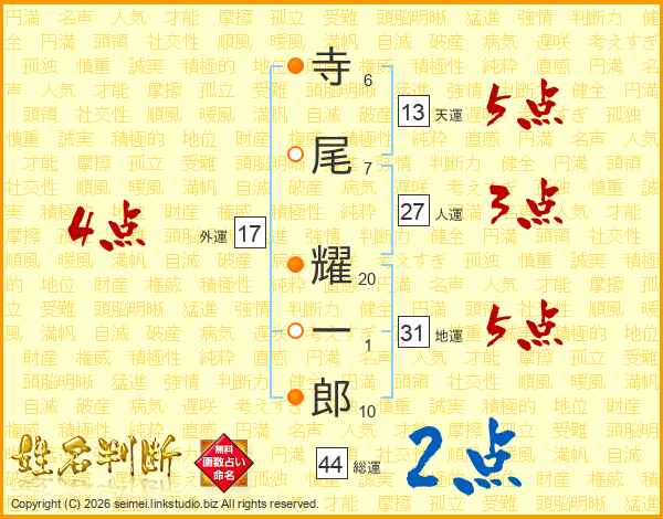 寺尾耀一郎さんの天運は13画の5点!