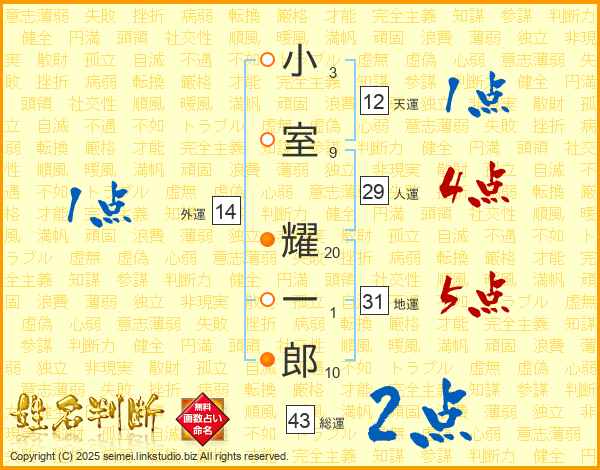 小室耀一郎さんの総運は43画の2点!