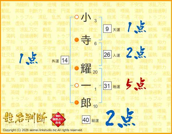 小寺耀一郎さんの地運は31画の5点!