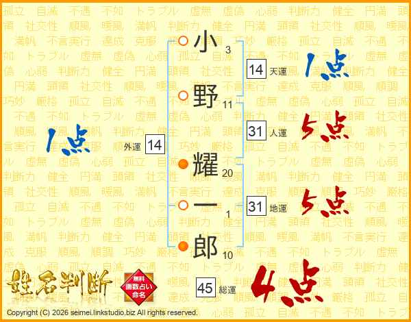 小野耀一郎さんの総運は45画の4点!