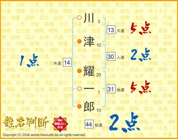 川津耀一郎さんの総運は44画の2点!