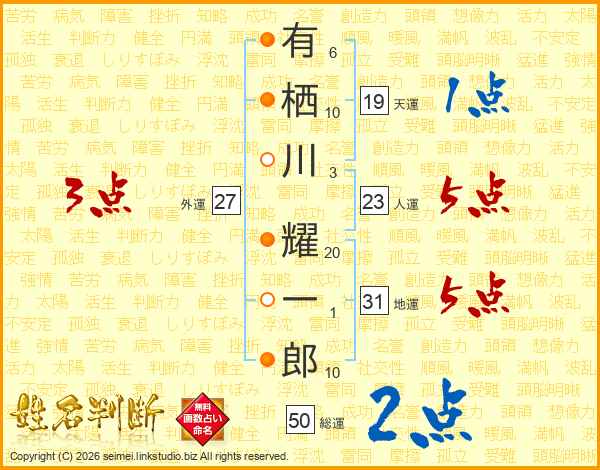 有栖川耀一郎さんの総運は50画の2点!