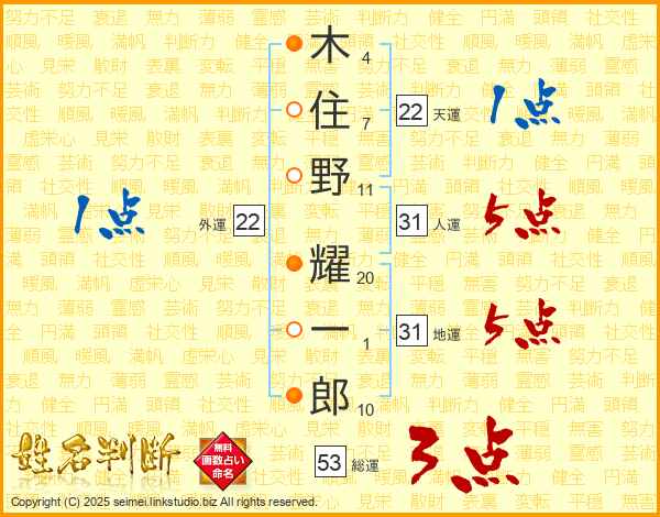 木住野耀一郎さんの人運は31画の5点!